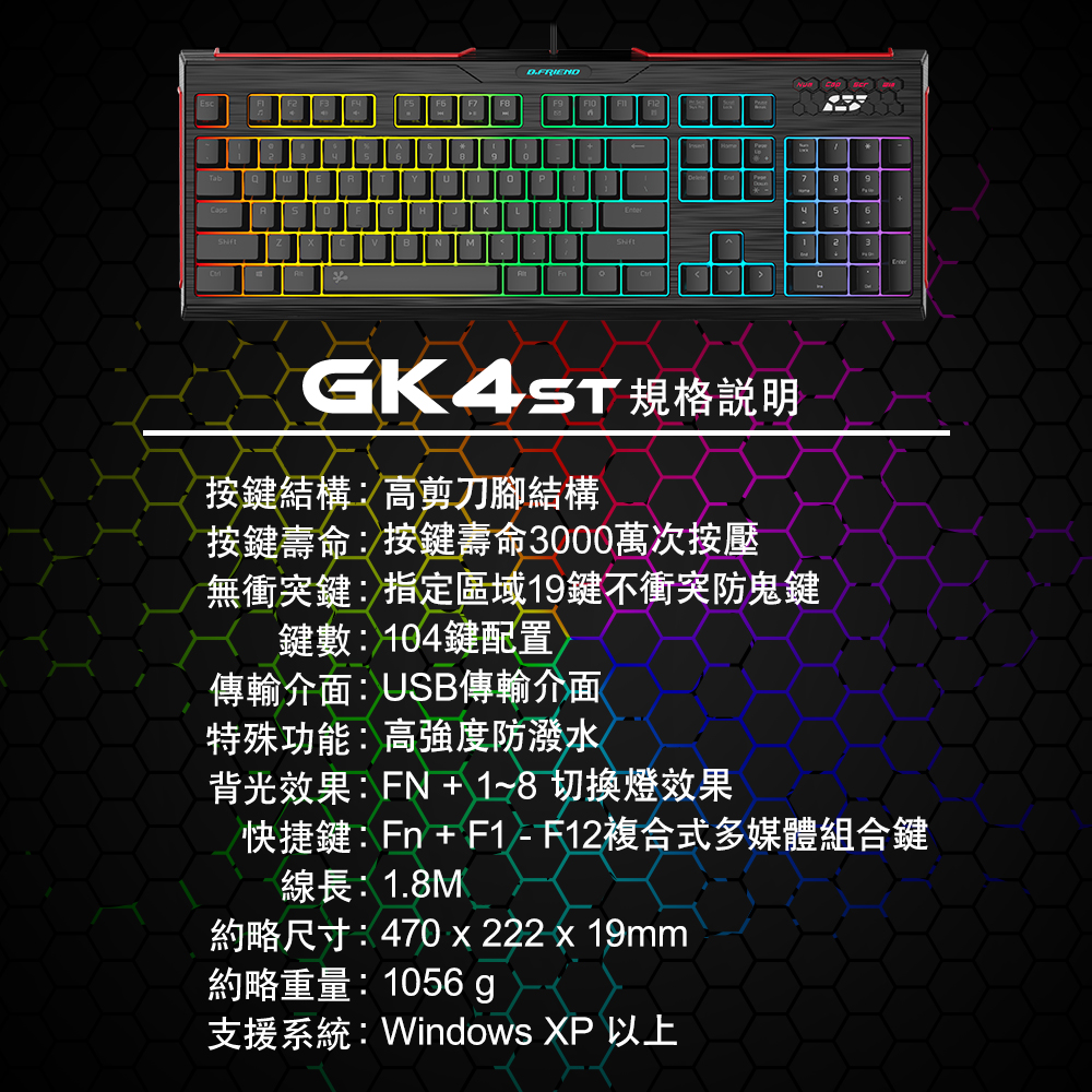 GK4ST 剪刀腳高鍵帽發光防水鍵盤(IP65認證)
